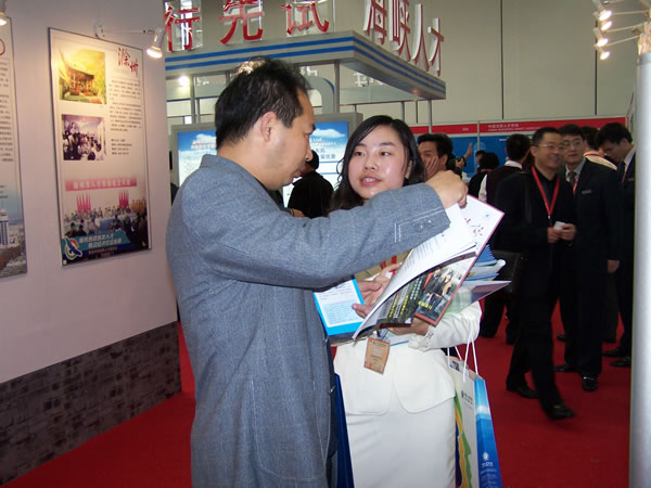 由中國人才交流協(xié)會、上海市人事局和浦東新區(qū)人民政府主辦的2007中國人才服務(wù)業(yè)博覽會于2007年11月15-16日在上海浦東展覽館舉行,中共中央政治局委員、上海市委書記俞正聲出席了開幕儀式并宣布開幕,中組部副部長、人事部部長尹蔚民,上海市委副書記、市長韓正到會致詞。眉州人才市場由分管領(lǐng)導(dǎo)親自帶隊參會,與多家國家級、省級人才市場親切交流,并達成一定的網(wǎng)上交流等合作意向。