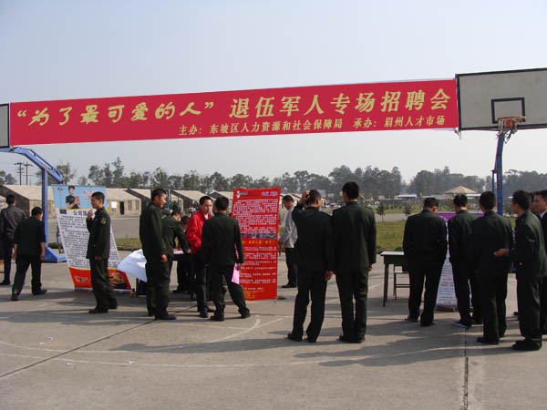 2010年12月上旬,東坡區(qū)人力資源和社會(huì)保障局為駐眉某部隊(duì)的退伍軍人舉辦專場(chǎng)招聘會(huì)。